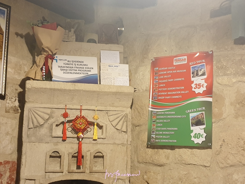 從巴士下車地方找了taxi送到旅館,花了15TL(約NT.90),當我到了Turquaz Cave Hotel旅館時看到員工在接待處熟睡,因為我當時真的很想上廁所,外面又很冷,於是只好很抱歉的去敲了接待處的玻璃門