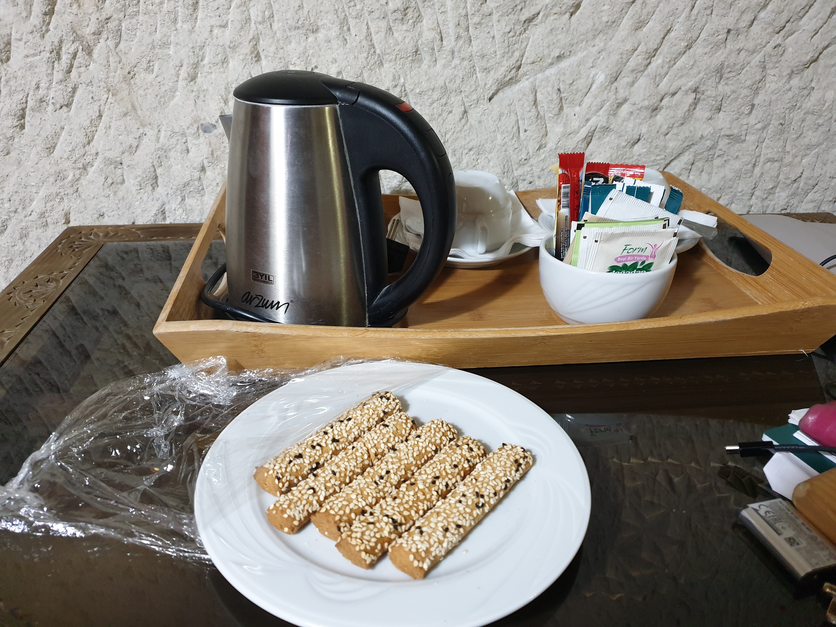真的是洞穴的感覺,屋頂很矮但卻很溫暖,房間還有點心跟咖啡,當時我真的是餓到覺得感激阿