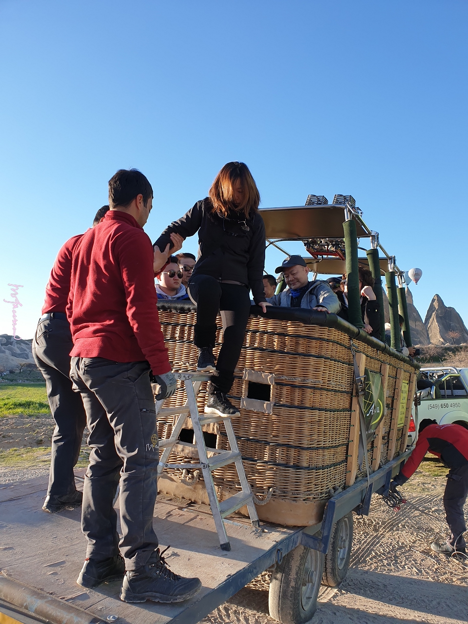 原本預定可以搭熱氣球的那天因為風大,所以熱氣球不能飛,而旅館阿公說那家旅行社是他朋友,還主動幫我打電話去跟旅行社說我的熱氣球不能飛那就改隔天, 等到可以搭熱氣球的當天早上是一個非常好的天氣,前一天阿公說「大概5:30車會來,他來了我會叫你」