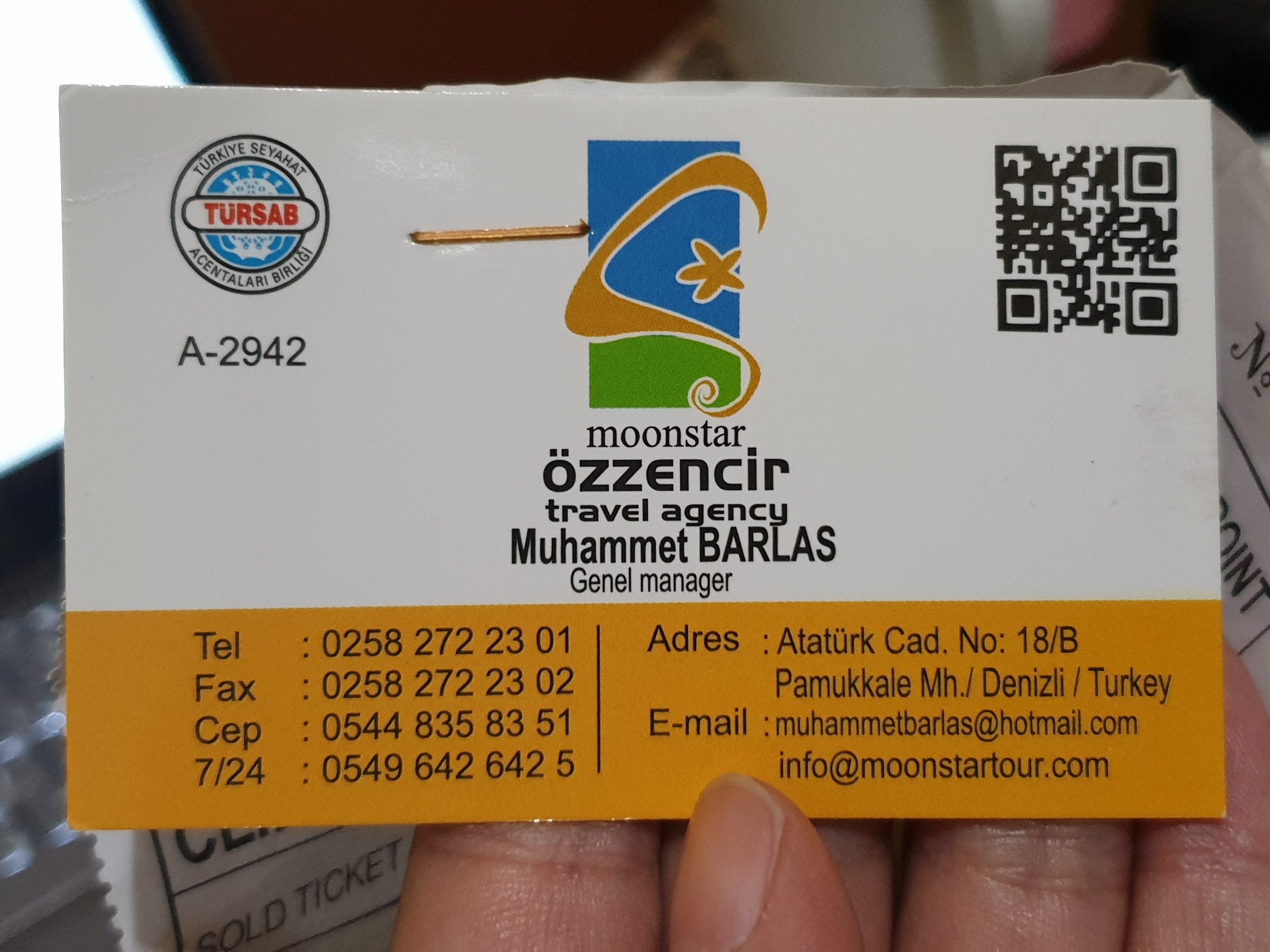 一定要公布這家旅行社是哪一家這麼不負責任,大家一定要記得千萬不要跟這家當地旅行社買任何團,這張名片上的是棉堡分行,格雷梅的同名旅行社卻說他們不能處理我的問題