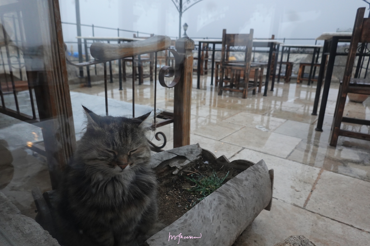 請注意:要搭卡帕多奇亞搭熱氣球就是住在「格雷梅」Goreme, 早上6點一到Goreme,下車後發現在下雪!