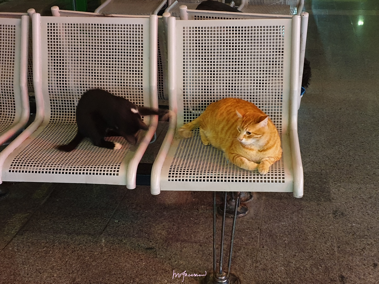 餐廳的貓咪來回奔跑與玩耍