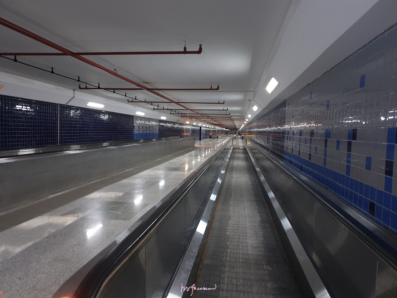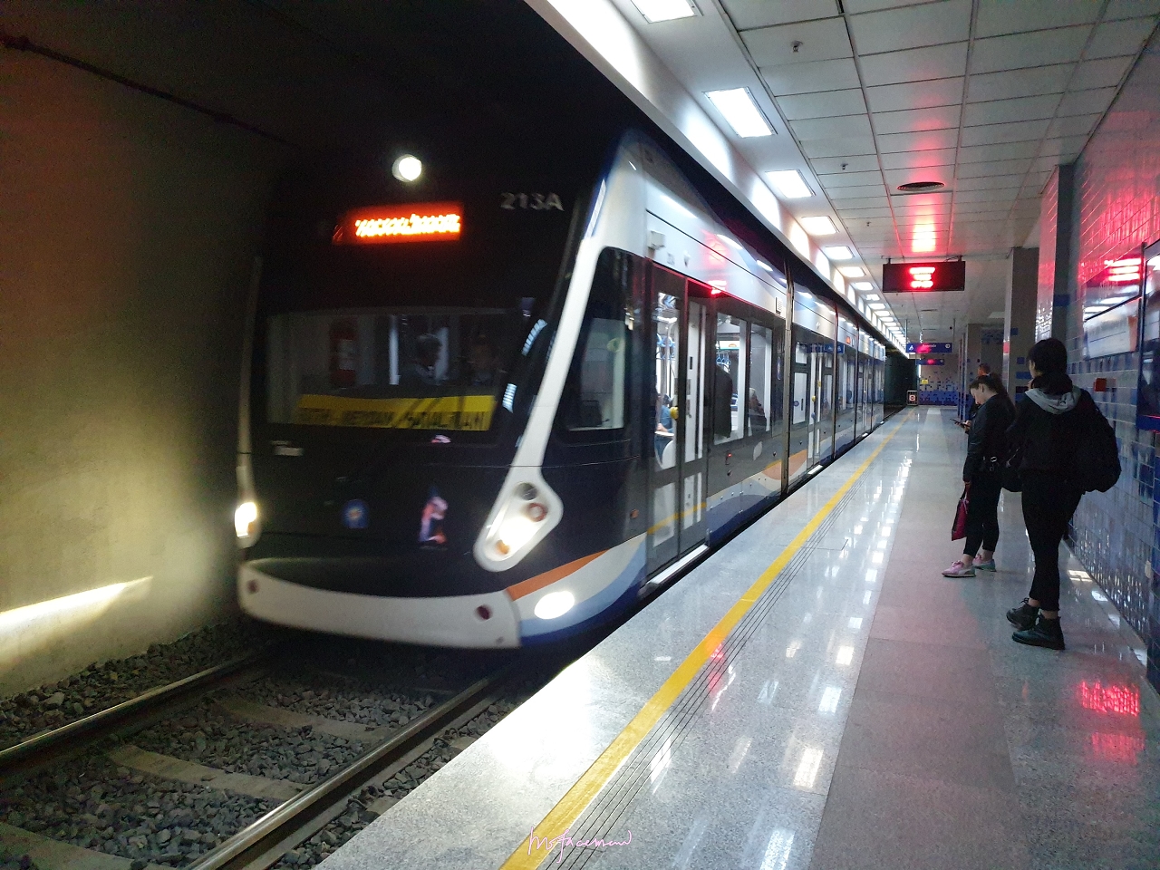 經過一個很長的地下道後就能抵達輕軌的車站