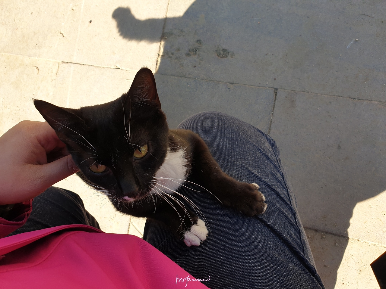 當天有一位土耳其美眉在跟貓咪們玩耍時