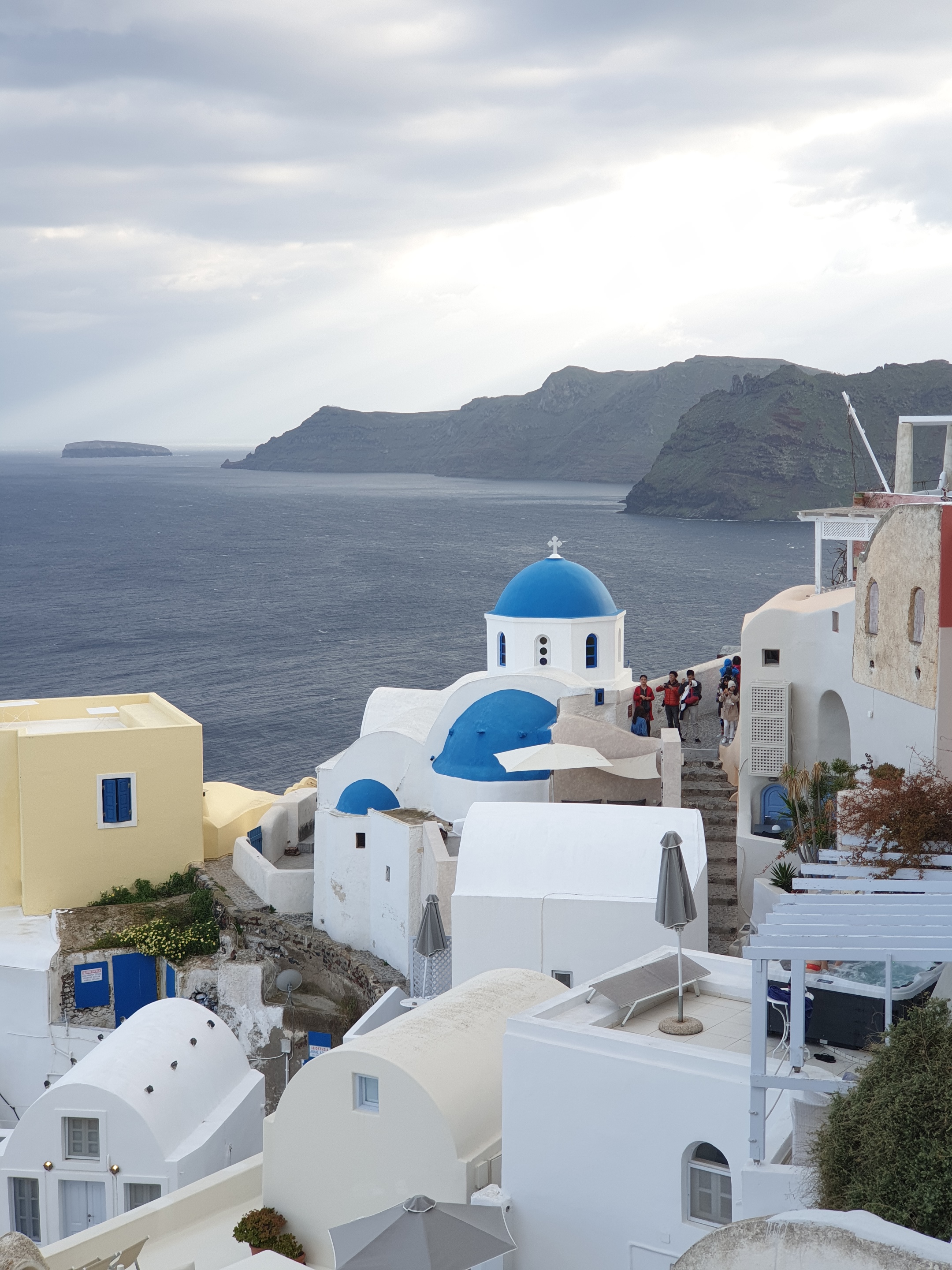 雖然我第一天抵達時是陰天,後來因為風大雨大被困在島上,但離開聖島的最後一天還是在Oia看到了晴天版的聖托里尼,也在Fira拍到了超美夕陽,希臘之行已經無憾了!